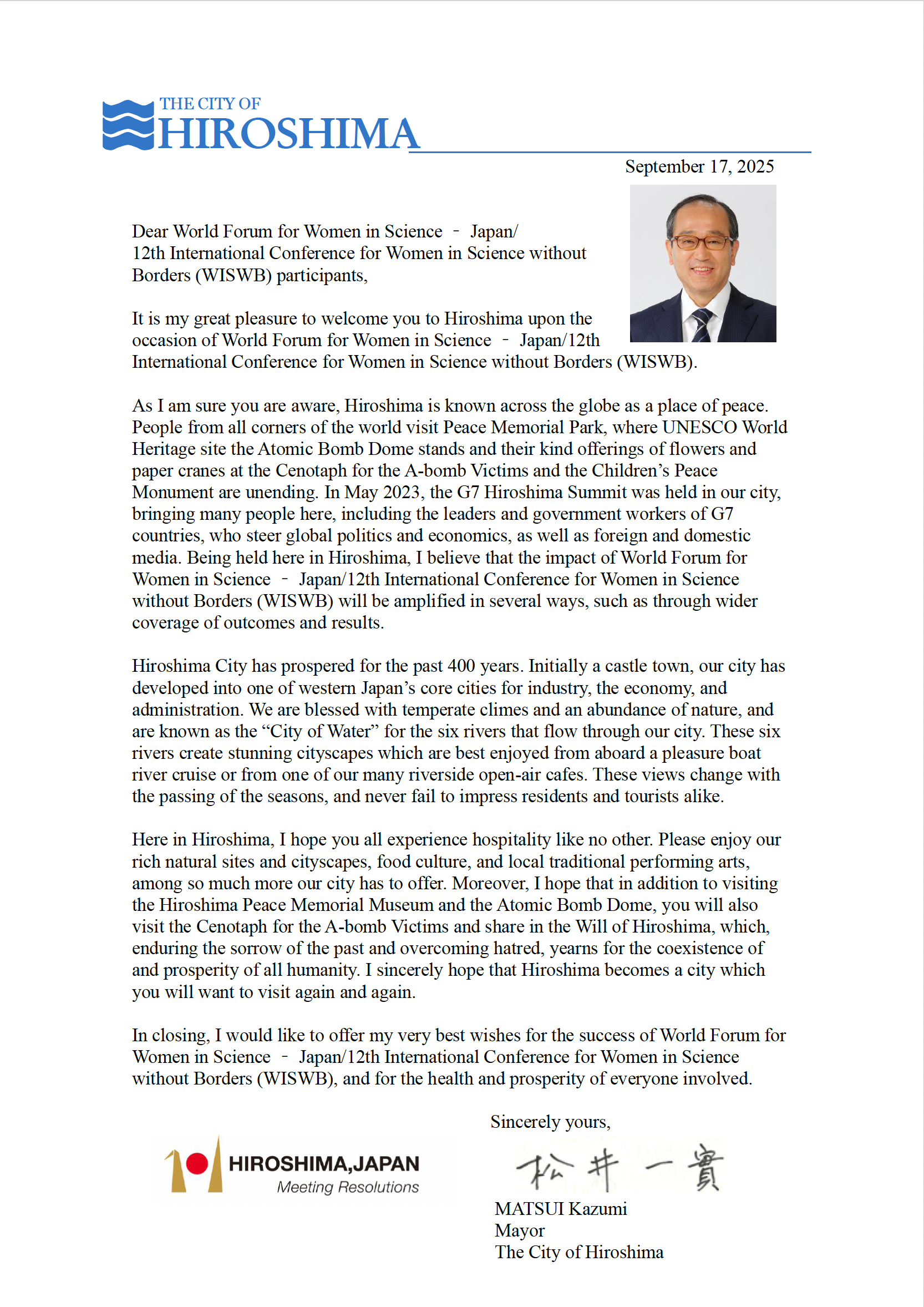 Hiroshima, a city known for its resilience and commitment to peace, serves as an ideal setting for this important gathering because of the city’s enduring legacy of transforming suffering into hope, and its global role in promoting dialogue, reconciliation, and human-centered innovation. As a symbol of peace and recovery, Hiroshima reminds us that scientific and social progress must be guided by compassion, ethics, and equity—principles that also lie at the heart of social innovation and the pursuit of equitable futures. By hosting this event in Hiroshima, we hope to inspire collaboration and empower women scientists to drive positive change in their respective fields and beyond.